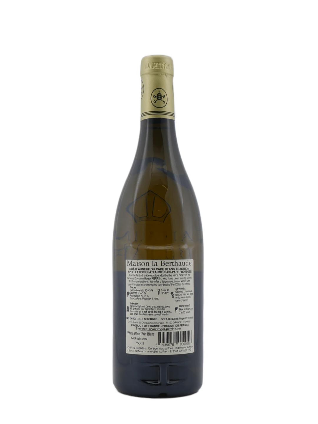 Schlagwörter: Clairette, Grenache Blanc, Roussanne, Weißwein, Frankreich, Rhone, Châteauneuf-du-Pape, Berthaude, Bourboulenc